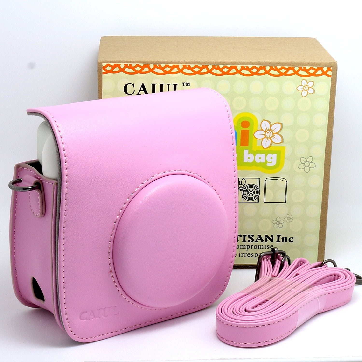 CAIUL PU Leather Instant Camera Case For Fujifilm Instax Mini 25 Instant Camera,Pink