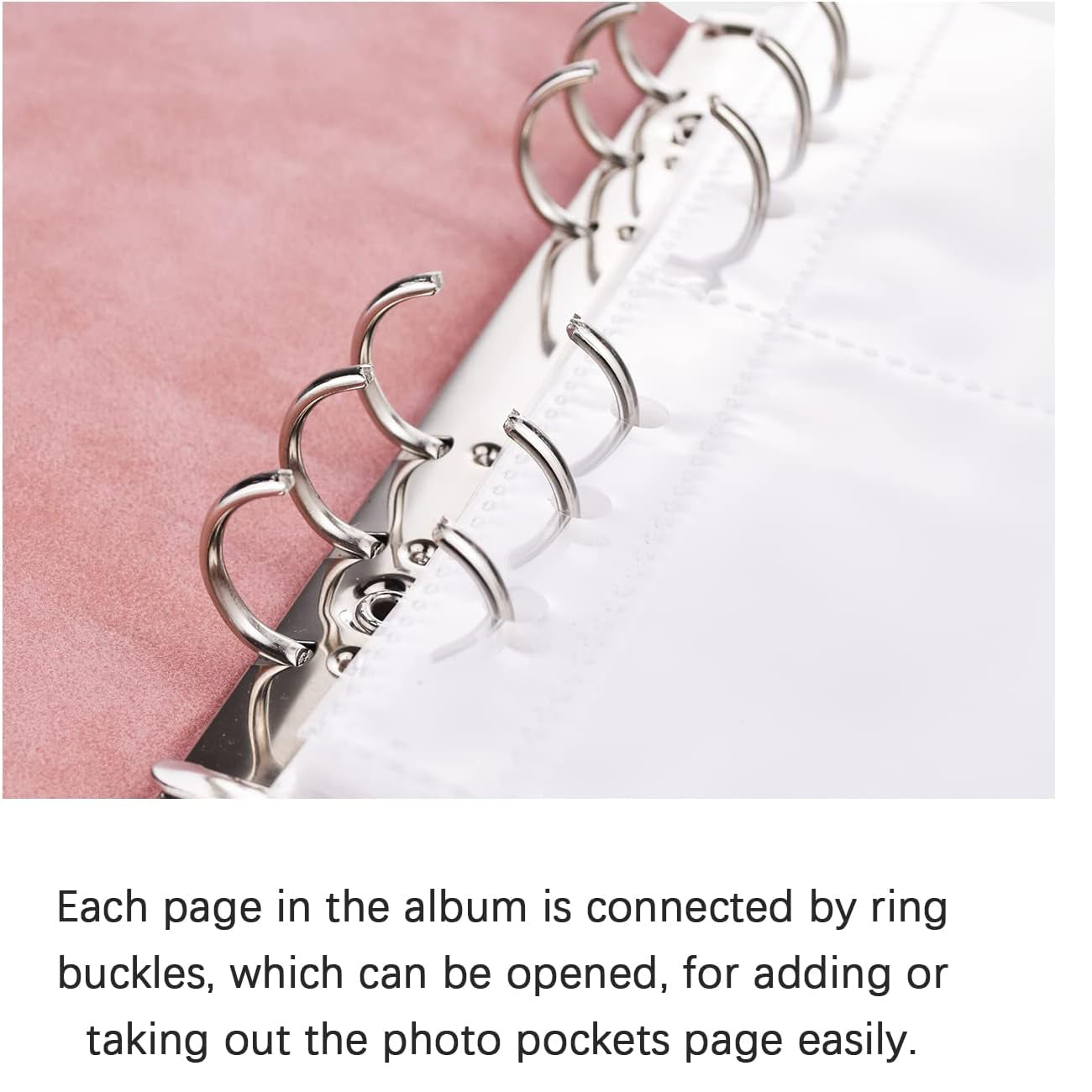 - Hold 200 films in total, this album contains 64 individual pages with 4 photos per page, opens like a book for easy viewing. Best for weddings, engagements, graduations, baby photos or other arty obsessions.