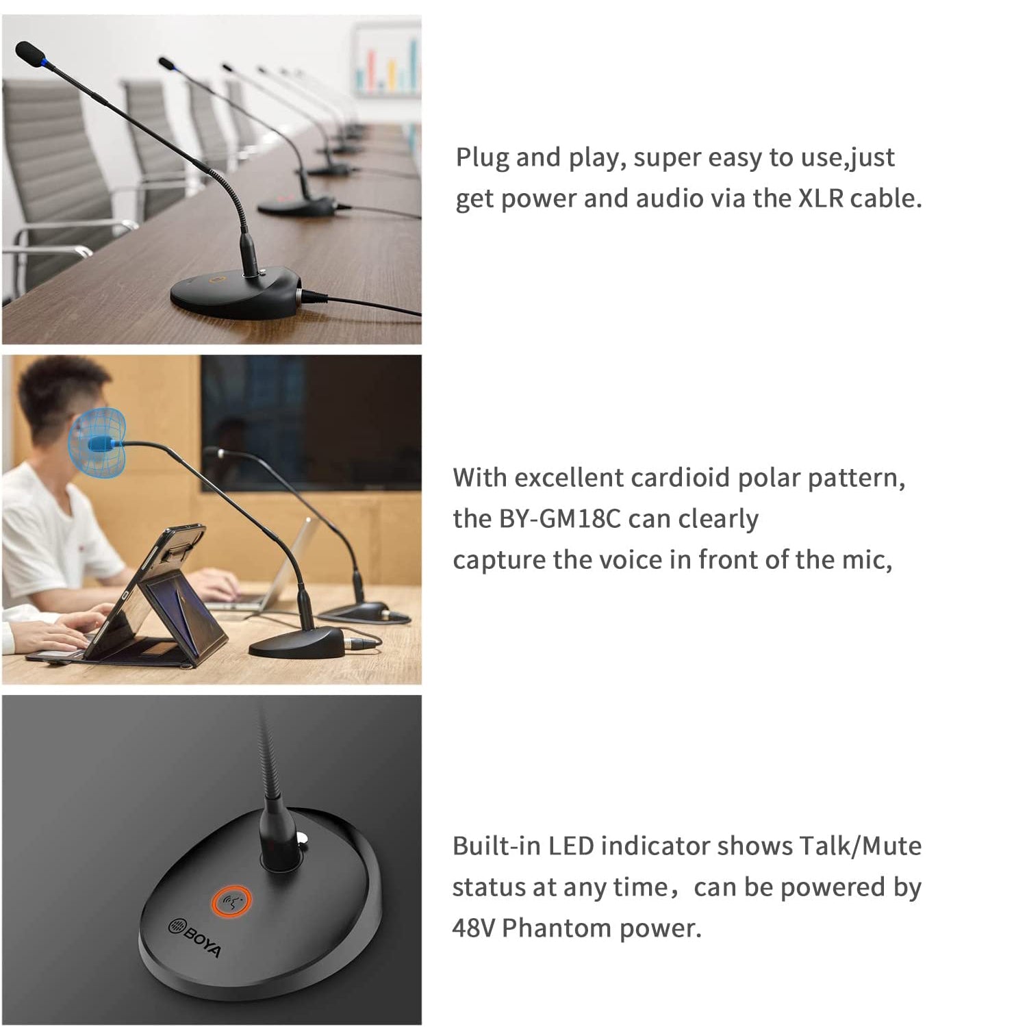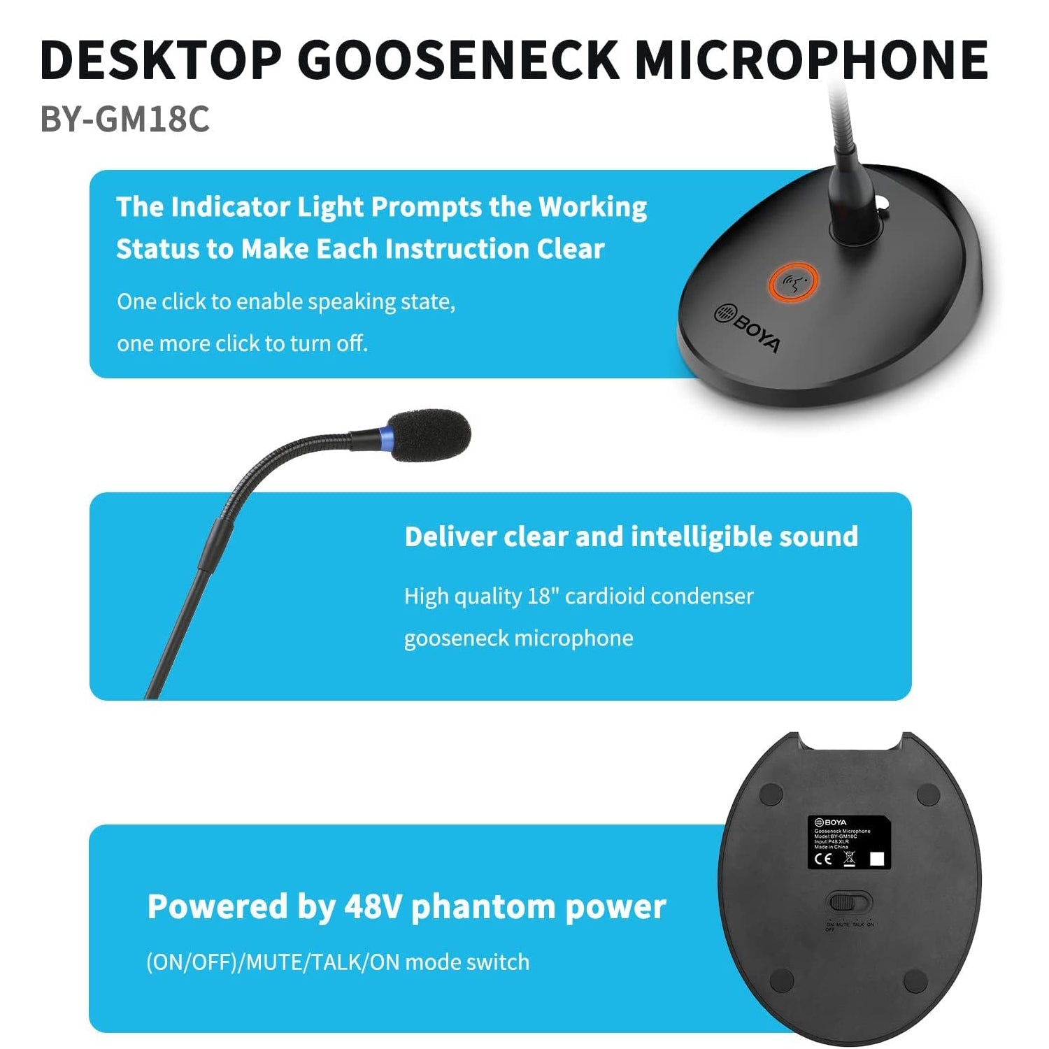 Boya BY-GM18C is a cardioid condenser gooseneck microphone. It's an ideal choice for lectures, conferences and meetings.