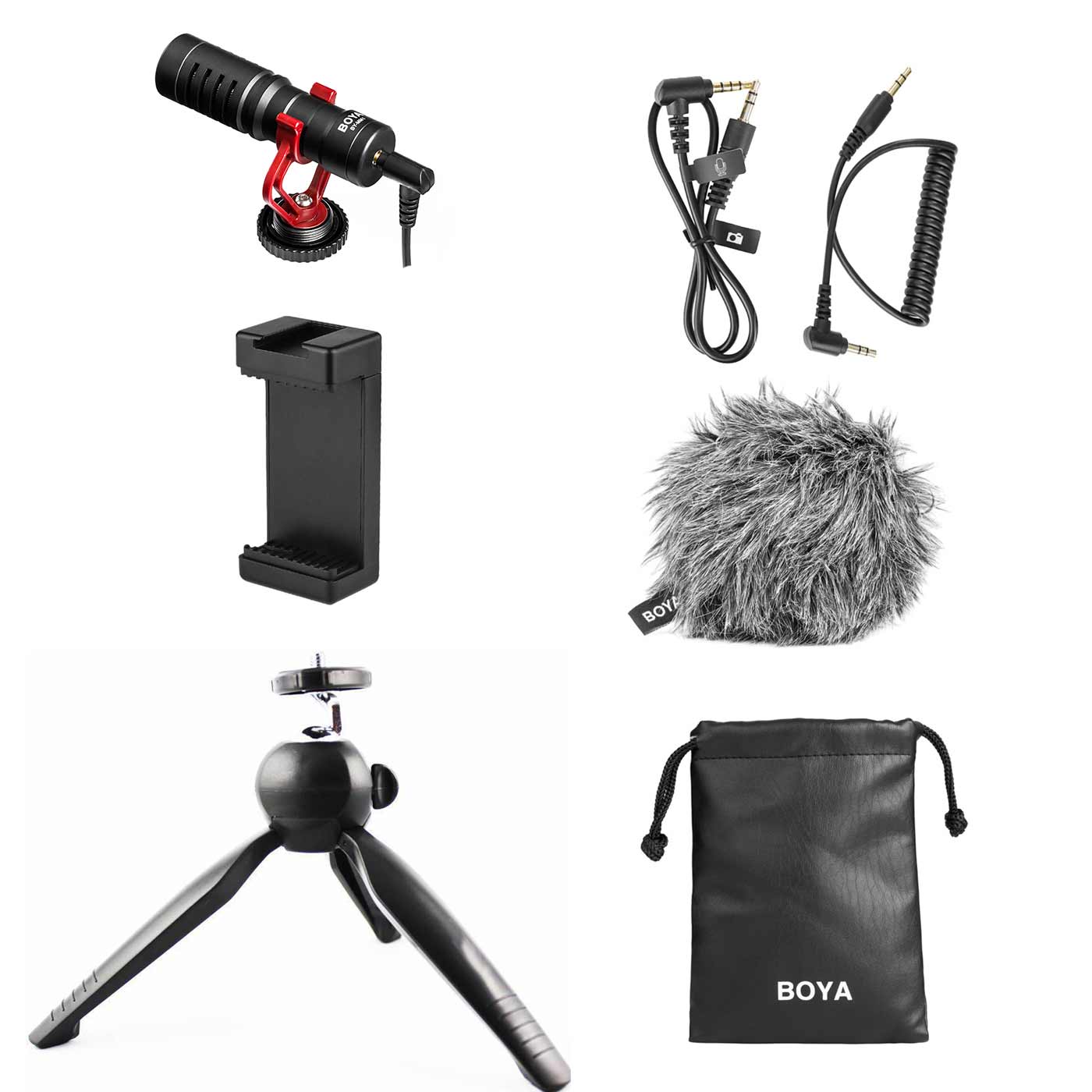 BOYA BY-MM1 with Mini Tripod and Mount 3 Universal Cardiod Shotgun Microphone