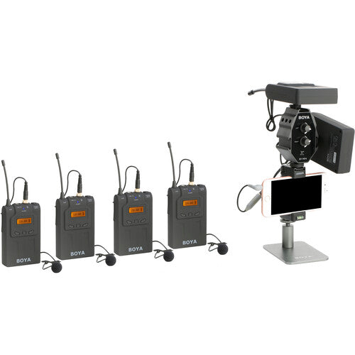 BOYA BY-MP4 is a 2-channel audio adapter, with a 3.5mm TRRS cable and a 3.5mm TRS cable wich allows you to shoot videos with smartphone, DSLR camera or camcorder. This adapter provides you with a compact dual-mic mounting and audio mixing solution, which allows you to easily mount and control two mics or wireless receivers. It requires no batteries or power source. It has three integrated mounting shoes to attach a variety microphones or wirless receivers, also others accessories, such as LED light, monitor etc.