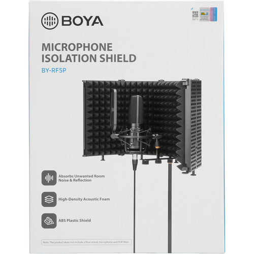 The BOYA BY-RF5P is a foldable microphone isolation shield, it help to reduce the reflection and noise effectively during recording, gathering a clear high-quality sound from home recording studio, live streaming, or professional vocal recording.
