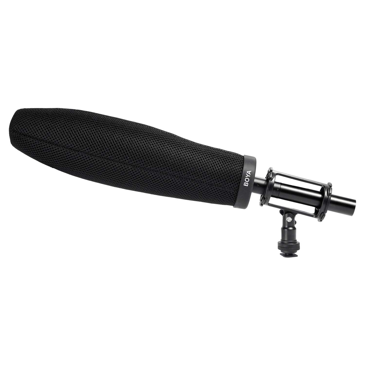 The BOYA BY-T320 is a slip-on foam microphone windscreen with a 12.6" inside depth. It fits shotgun microphones with diameter ranging from 0.75 to 0.9".