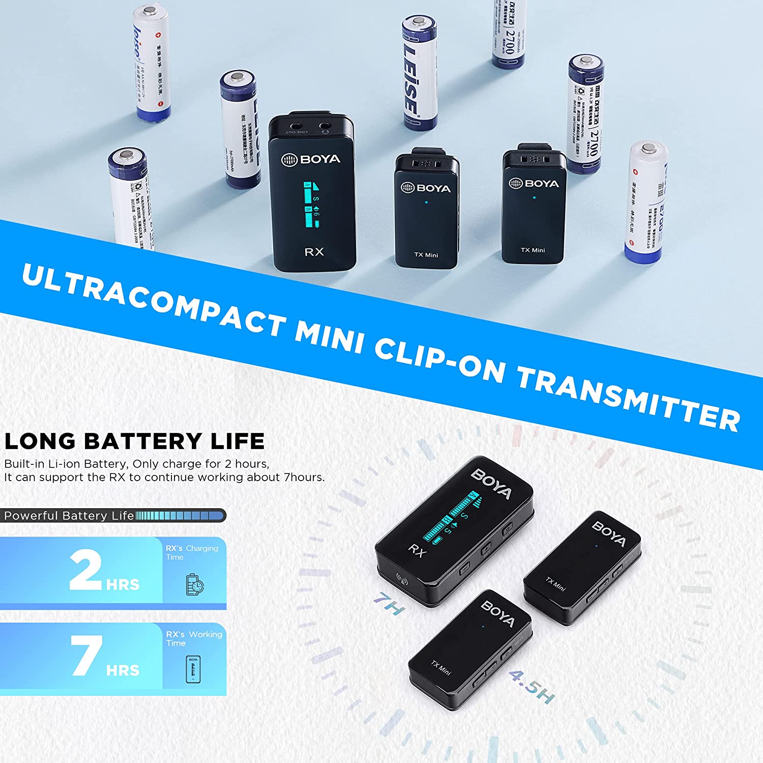 The BY-XM6 Mini is designed to perfectly work with DSLR, mirrorless, mixers, modern computers, smartphones, tablets, and more. In addition, both transmitter and receiver are equipped with a built-in rechargeable lithium-ion battery that makes it a worthwhile option for content creators to consider if they are constantly shooting outdoors.