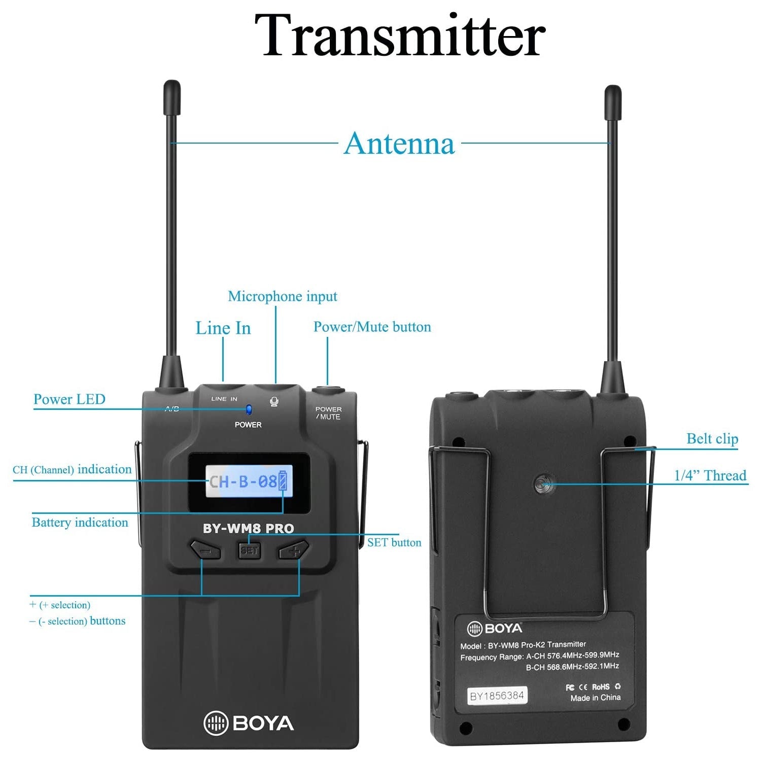 The BOYA TX8 Pro is a Digital Wireless Bodypack Transmitter with Lavalier Microphone, compatible with RX8 Pro and SP-RX8 Pro ( Receiver sold separately).