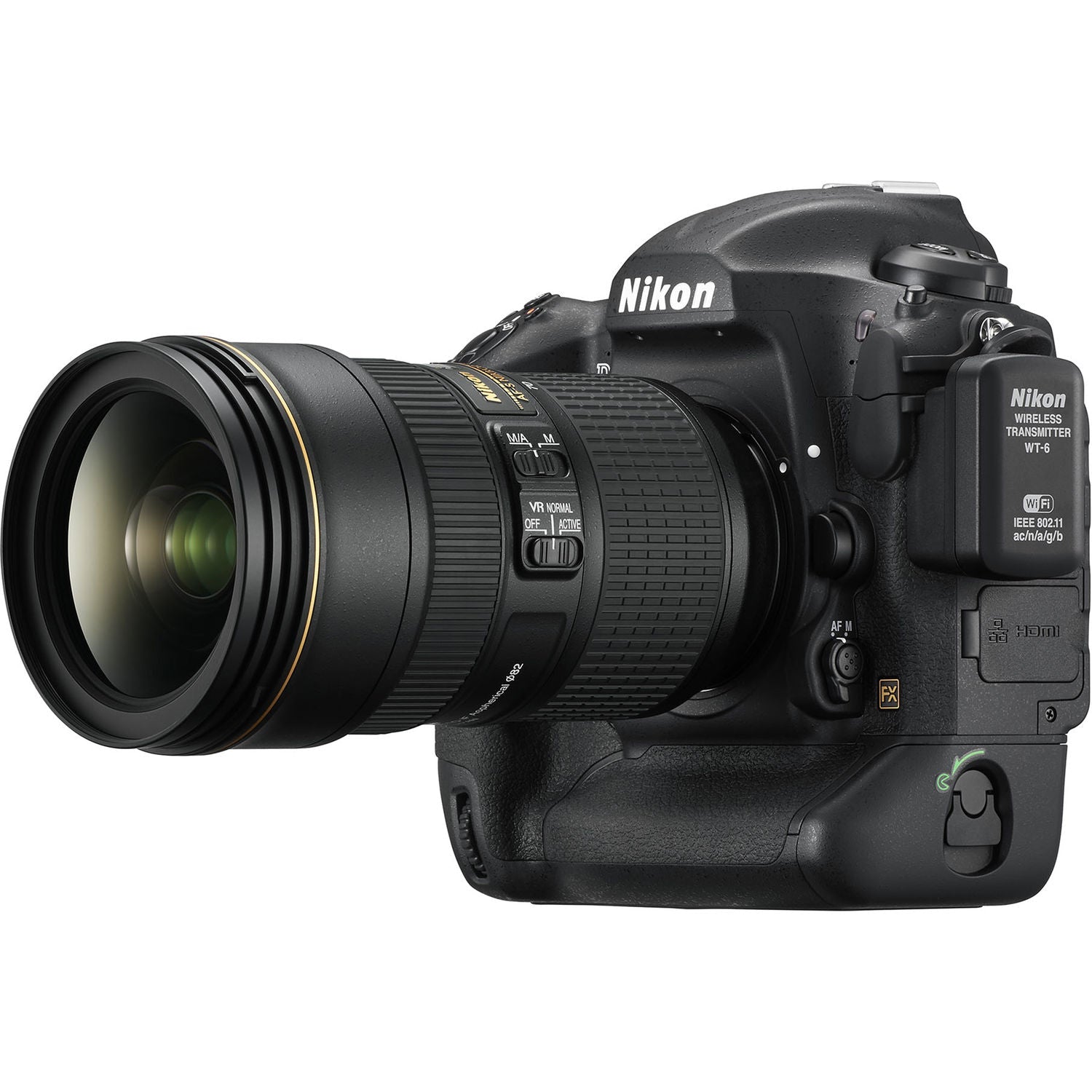 Designed for use with the D5 DSLR, the WT-6A Wireless Transmitter from Nikon enhances the camera's connectivity capabilities with the addition of 802.11ac and 802.11a/b/g/n Wi-Fi. At its most basic, this transmitter allows users to transfer or view files as well as remotely control the camera over the Wi-Fi connection. It also has an exceptional range of up to 656' when line of sight is maintained and a speedy data transfer rate of 130 Mbps. It offers both an HTTP mode for browser-based access to the camera from either a computer or mobile device and an Access Point mode for direct connection to the camera itself. Along with this, users will be able edit image comments, copyright, or IPTC information for seamless transition to the editing stage. Additionally, with multiple cameras equipped with this transmitter, users can take control of up to 10 DSLRs at a single time for synchronized release.