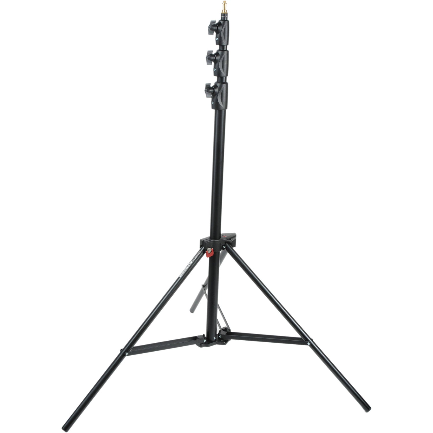 This is a Manfrotto Alu Master Air Cushioned Light Stand Quick Stack 3-Pack . Each stand in this set is a 4 section, 3 riser aluminum light stand with a black anodized finish that extends to a maximum height of 12' (4 m).
