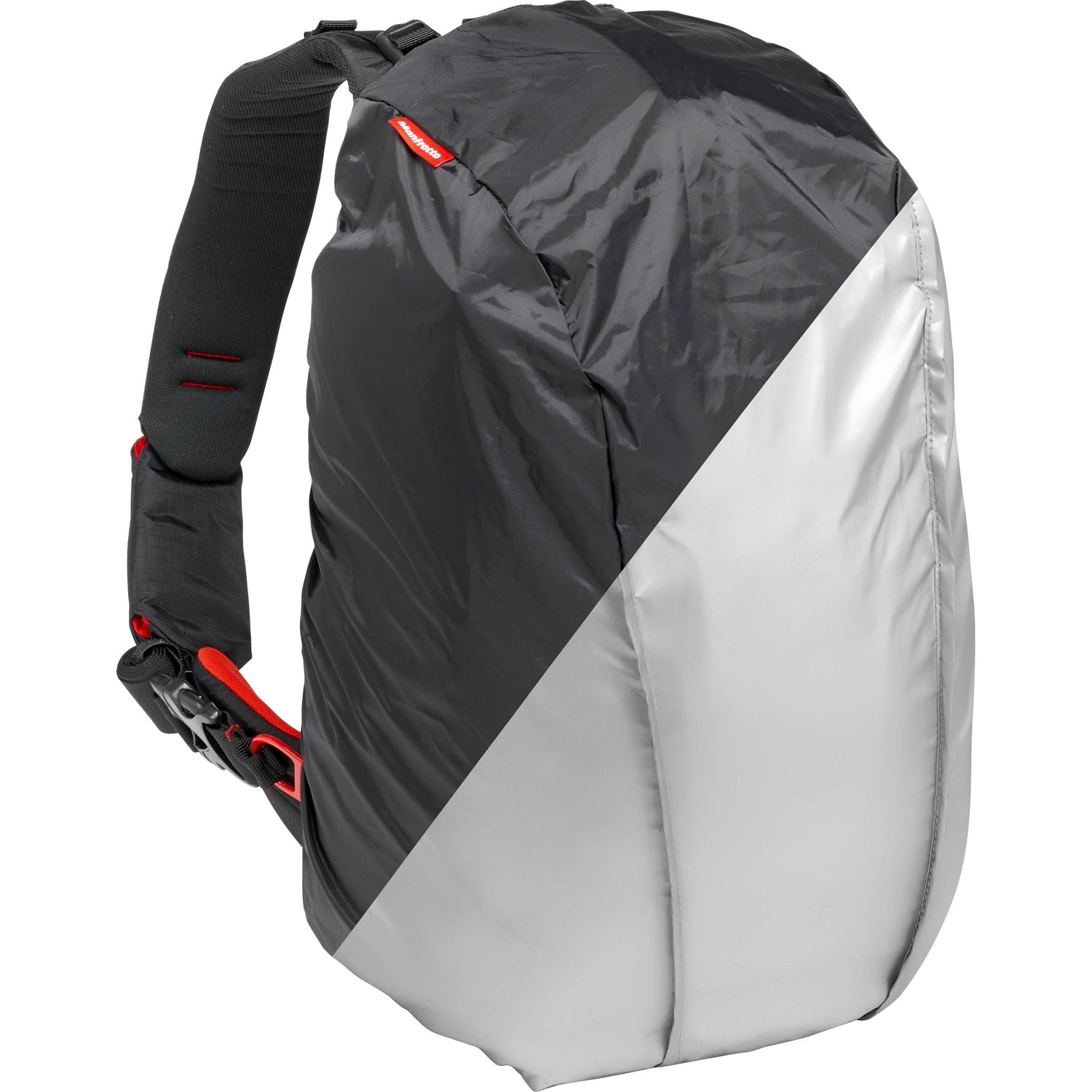 For storing your accessories, there are dual side zip pockets and dual front zip pockets, as well as a spacious storage compartment at the top. The top compartment features an interior organizer comprised of numerous pockets for further organizing your gear. There is a front tripod attachment, and a removable rain cover for unpredictable weather. The rain cover features a silver fabric that helps diverts sunlight to keep your gear from overheating. In addition to carrying the backpack like a sling, the harness can be worn like a regular backpack or in an X-position across your torso. Alternatively, you can carry the backpack using the top grip handle or the rear trolley strap.