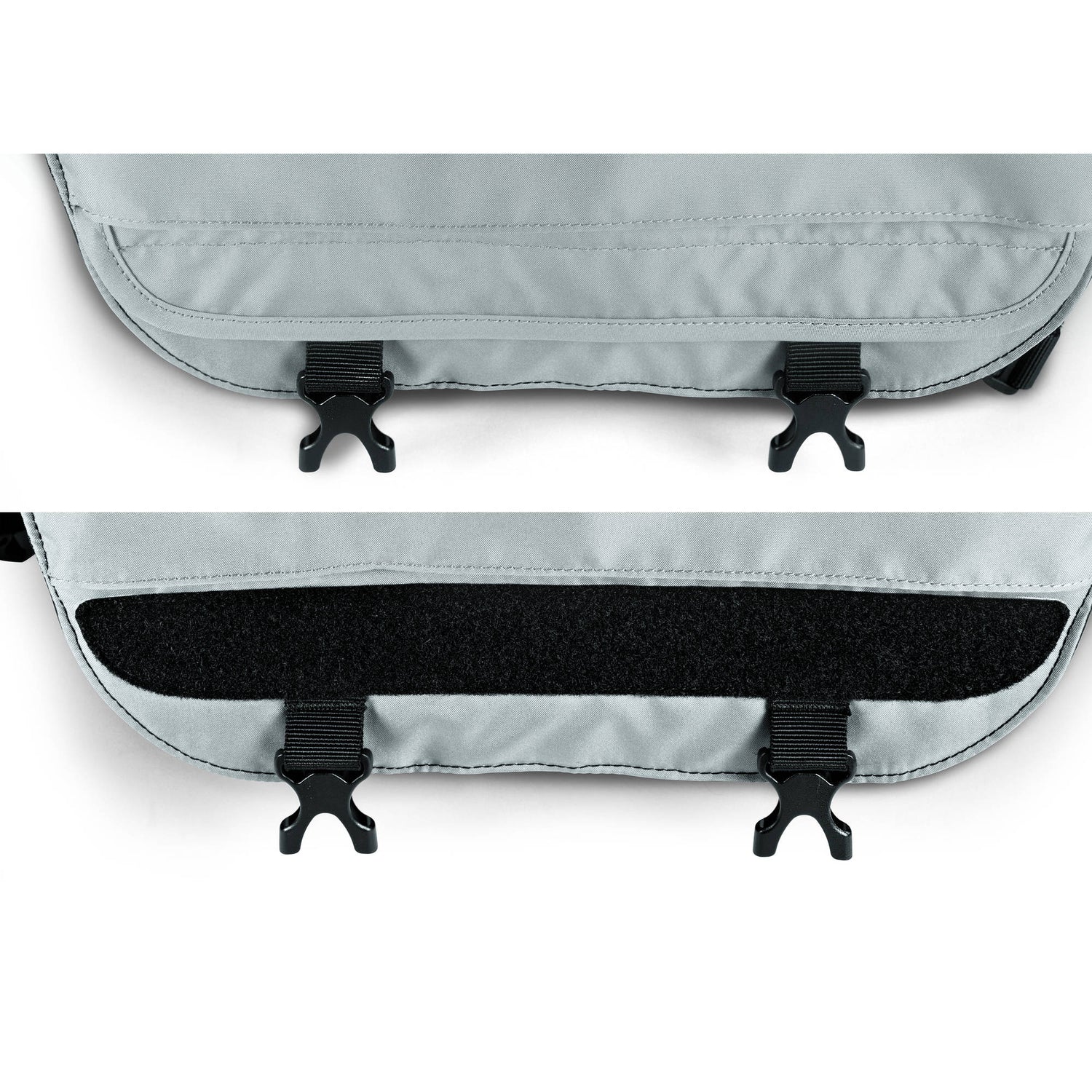 Zipper at the top of the messenger flap for quick access to camera gear.
