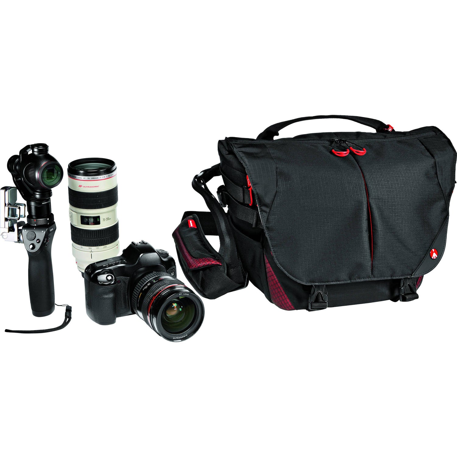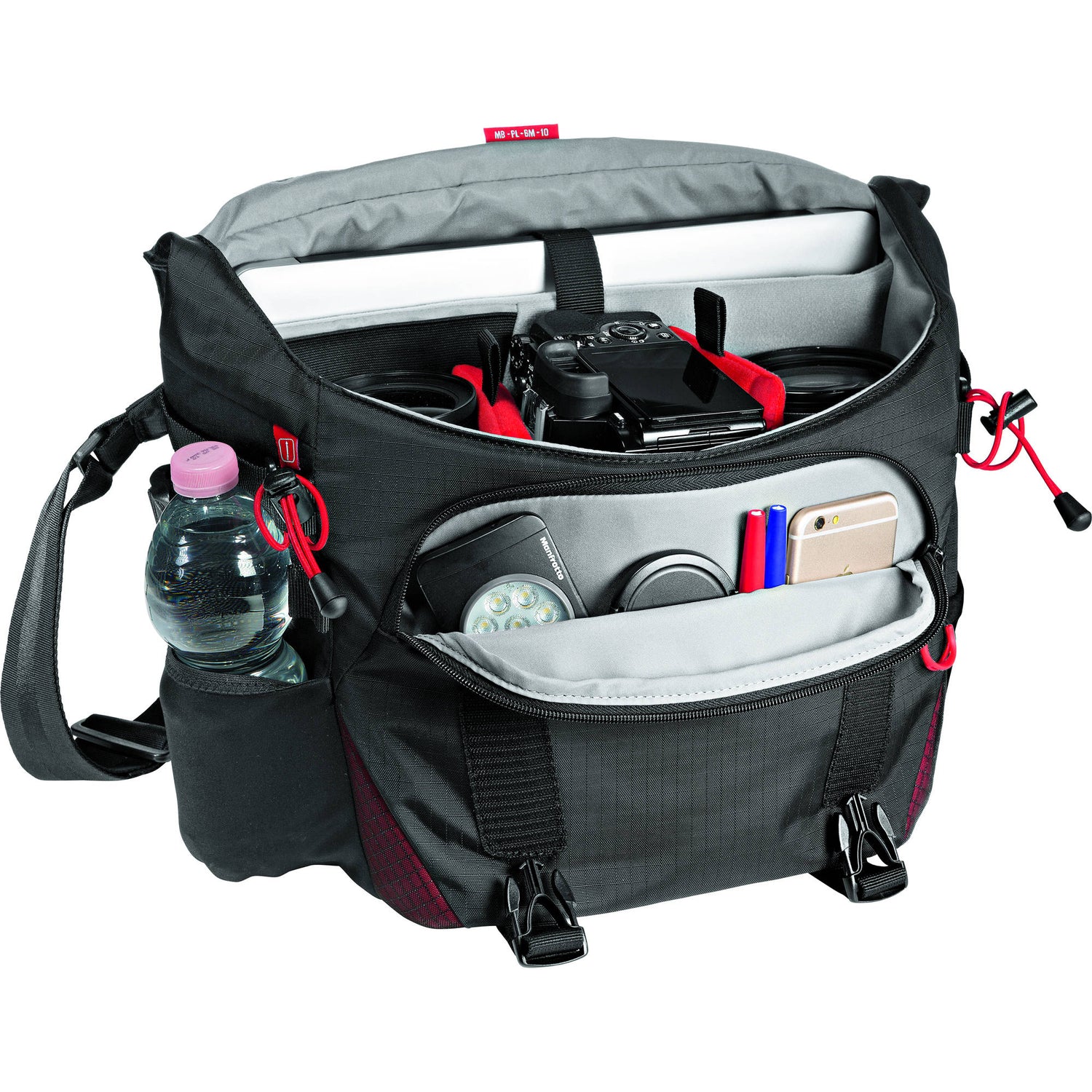 Store, transport, and protect your mirrorless DSLR, attached 24-70mm f/2.8 zoom lens, two extra lenses, and related accessories with the black Pro Light Bumblebee M-10 Camera Bag from Manfrotto. In addition to photo equipment, the bag has a padded compartment with a touch-fastening tab for your up to 13" laptop or tablet. The bag opens with a large, noiseless, touch-fastening flap and has padded, movable dividers for arranging gear. A variety of accessory pockets make stowing accessories quick and easy. Under the flap are elastic side straps for securing a mini tripod or other item.