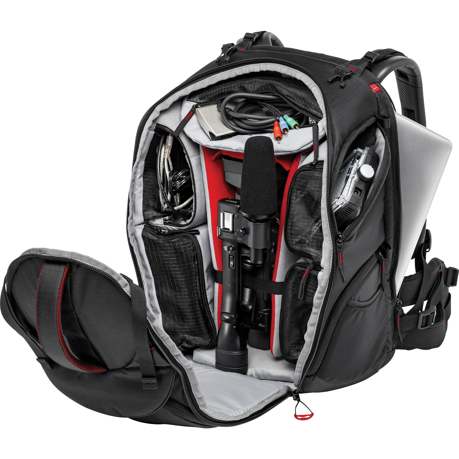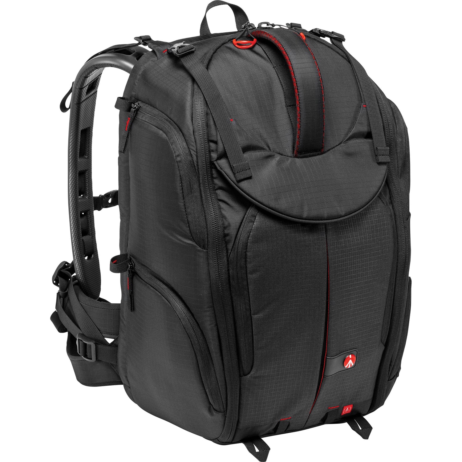 This Pro-V-410 PL Pro-Light Video Backpack from Manfrotto is made of durable ripstop nylon, and can hold a small camcorder or a large HDSLR rig configuration, plus 6-8 additional lenses, an additional camera body and numerous accessories.