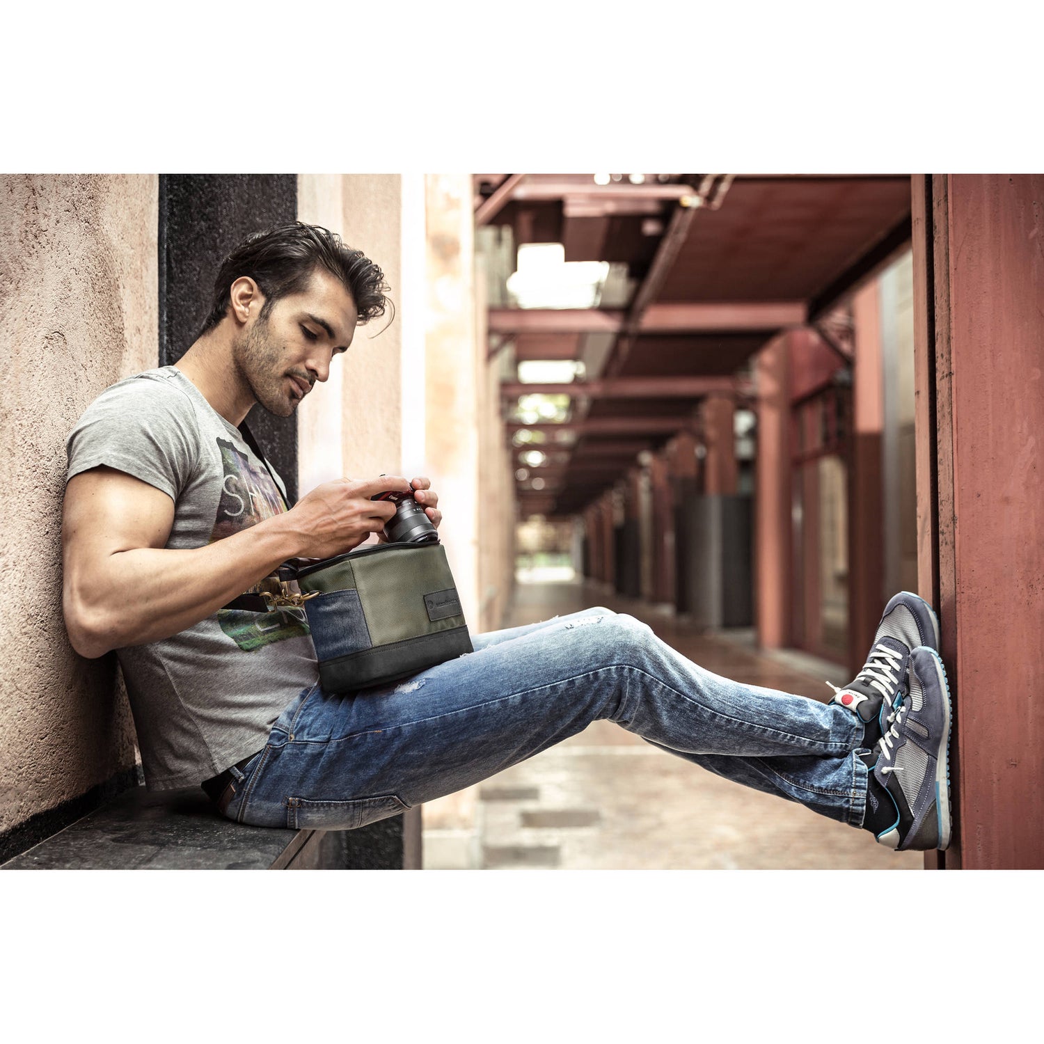 The Street Shoulder Bag from Manfrotto holds a DSLR with an attached zoom lens and one additional lens. A rigid padded interior divider ensures protection as you carry your gear while the quick access top zipper allows for easy removal so you don't miss a shot. For carrying the shoulder bag, there is a detachable adjustable shoulder strap with a removable comfort pad and a back carry handle for a quick grab and go.