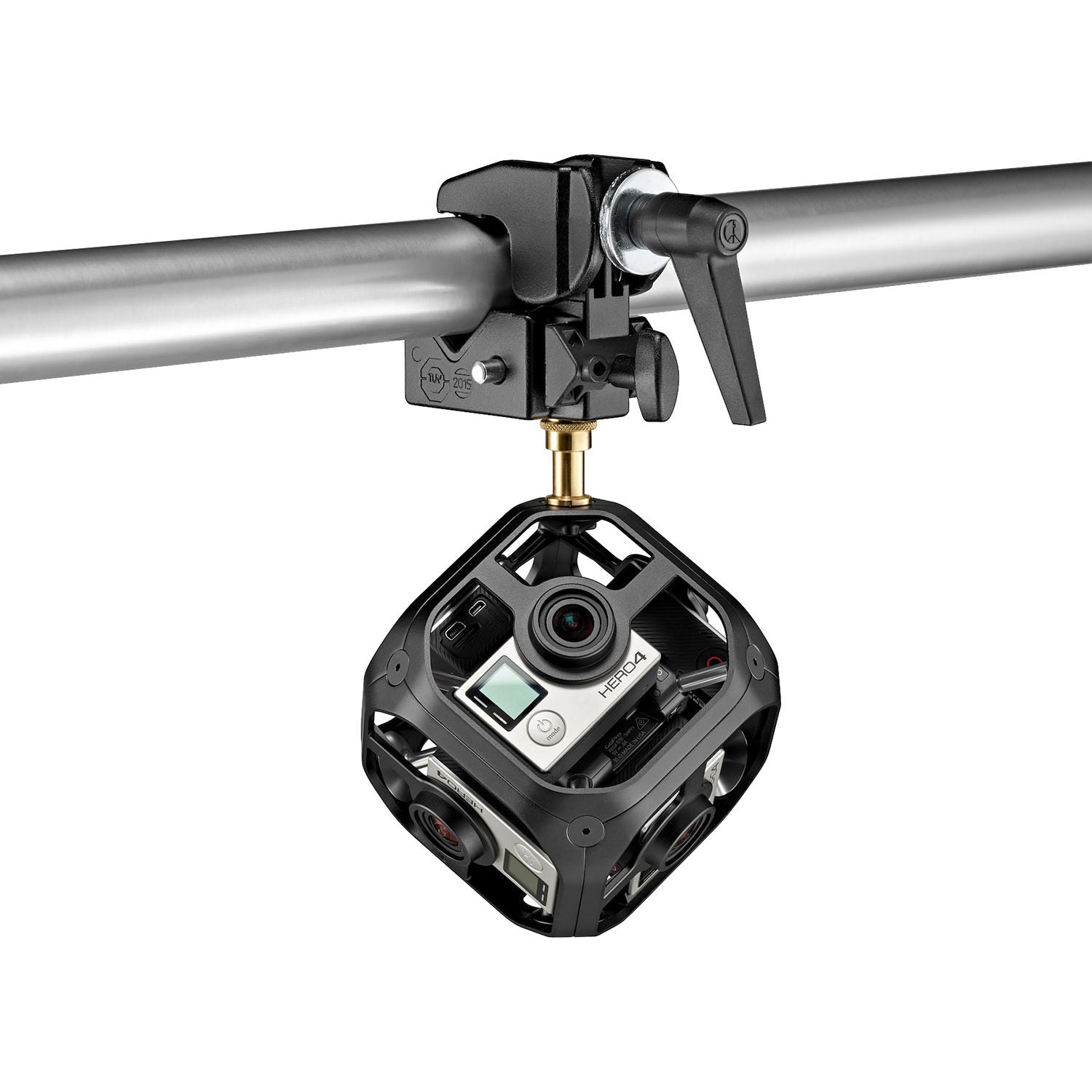 The Virtual Reality Super Clamp from Manfrotto has a clamping width between 0.5 to 2.2", and clamps to most surfaces including pipes, rails, trees, and table edges. Moreover, the aluminum clamp's weight capacity is up to 33.1 lb, and it is compatible with Manfrotto Virtual Reality Extension Booms, which enable you to attach a virtual reality camera.