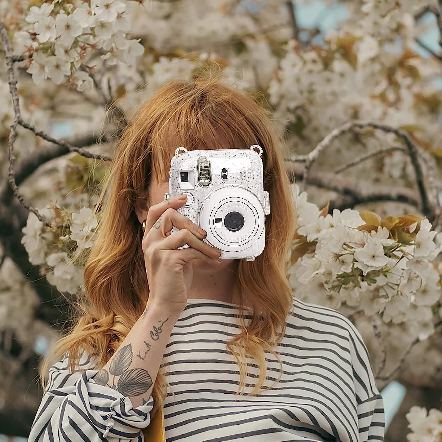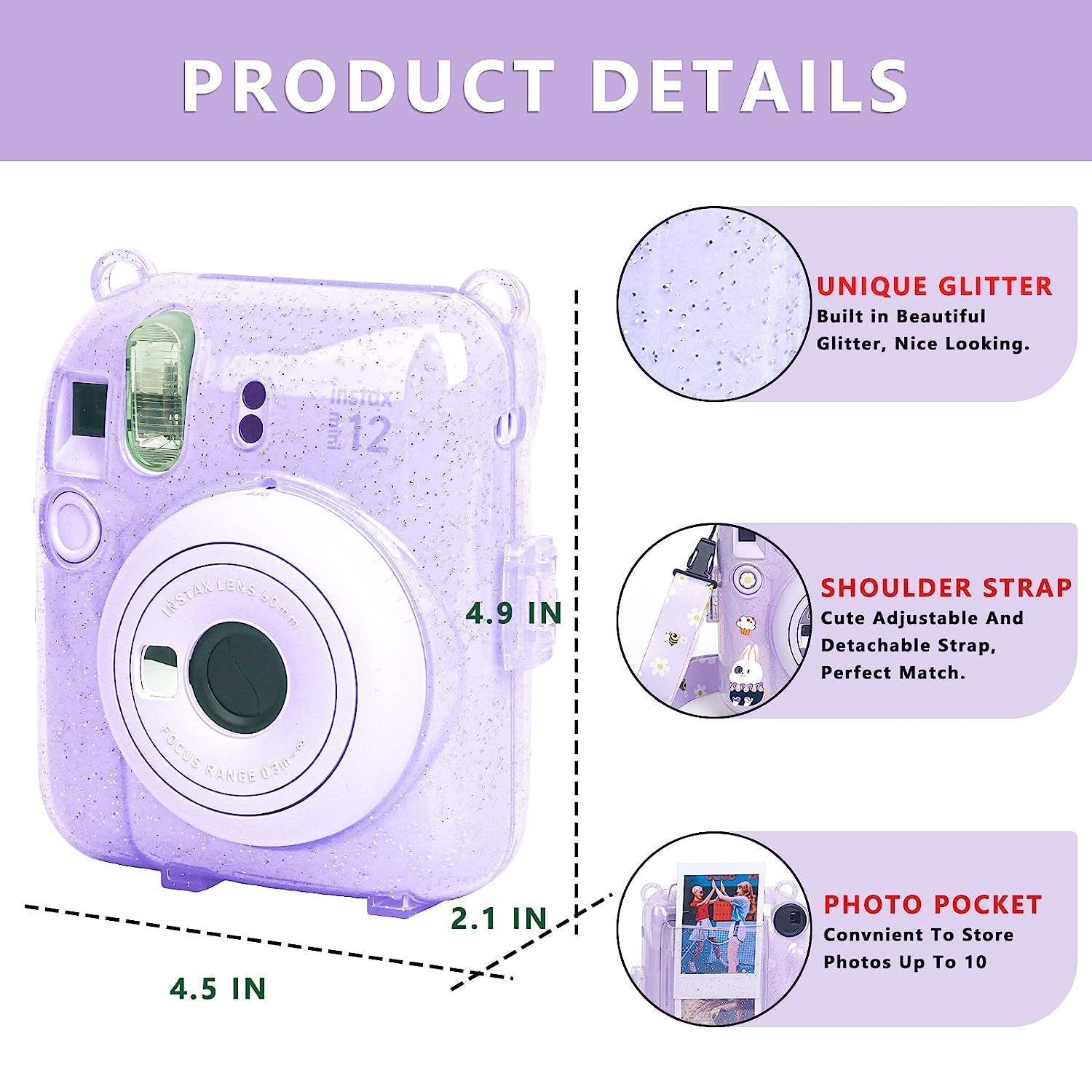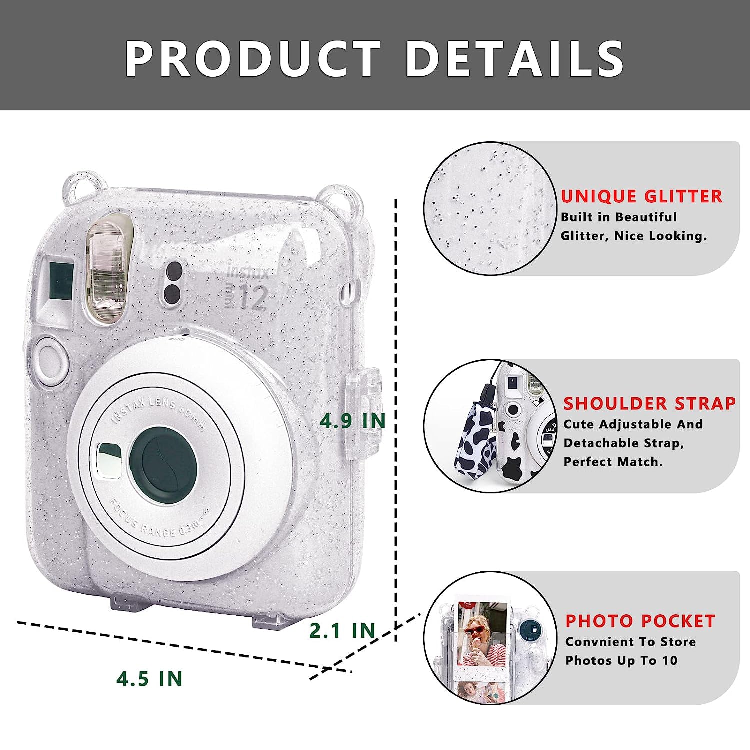 Instax mini 12 case incorporates the unique element of glitter. Specially customized for the latest Fuji mini 12 according to the real camera model. Perfect instax mini 12 accessories and a ideal gift for family and friends. The fujifilm instax mini 12 case designed with a photo pocket on the back for storing mini photos(Up to 10). Practical to meet the need for zero-burden photography when you are outdoors or traveling. Made of hard and durable PC , the instax mini 12 clear case effectively protects your camera from bumps and scratches while restoring the original beauty. Waterproof and dustproof PC material makes it smooth and high transparency, effectively blocking the damage to the camera from the outside world. Different colors of the instax 12 case come with a adjustable and detachable shoulder strap in different color and pattern. Suitable for different people's needs, freeing hands from fatigue at any time, easy to cross and hang, etc. committed to providing high-quality services and products. If you have any dissatisfaction with our products, please feel free to contact us and we guarantee to provide you the 100% satisfactory service and solution.
