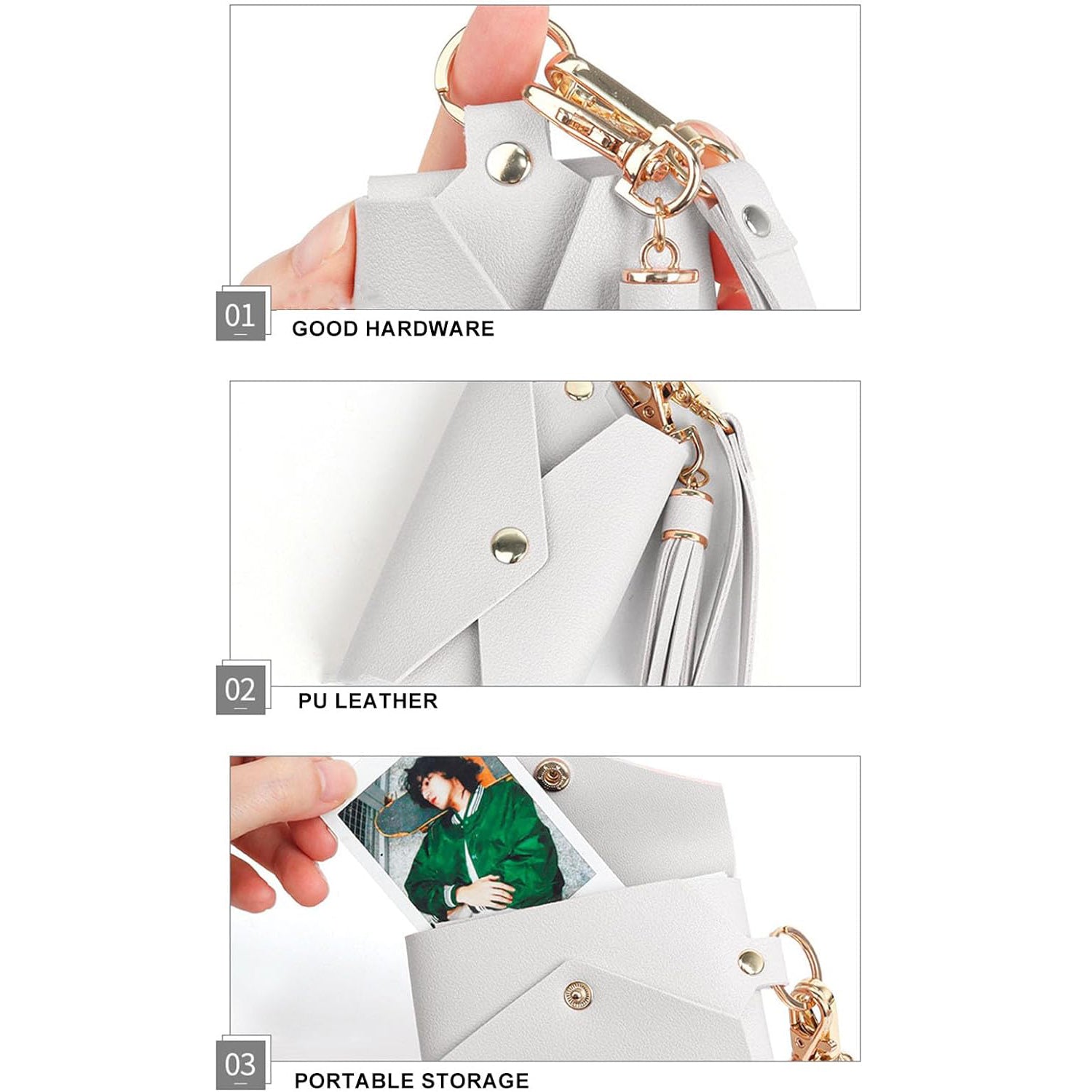 3. KEYLOCK DESIGN: The photo storage pocket uses a keychain design, you can tie it with your keys, which doubles as a keychain. Convenient to carry and not easy to lose.